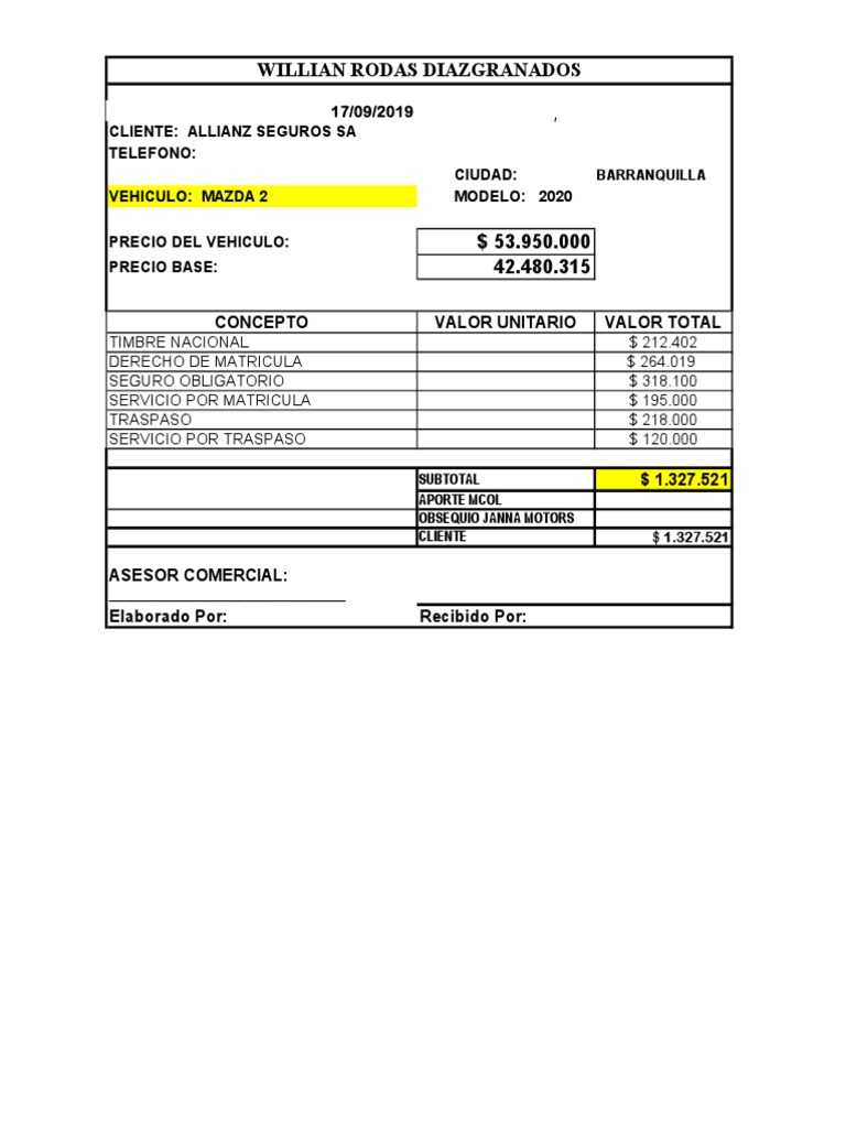 Valor Del Seguro Obligatorio 2020 Autofact