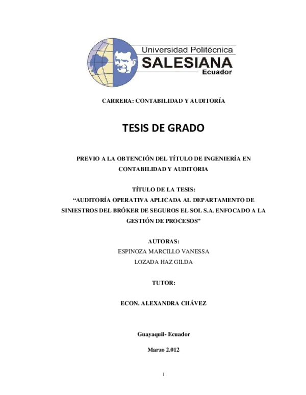 Pdf Auditoria Operativa Aplicada Al Departamento De Siniestros