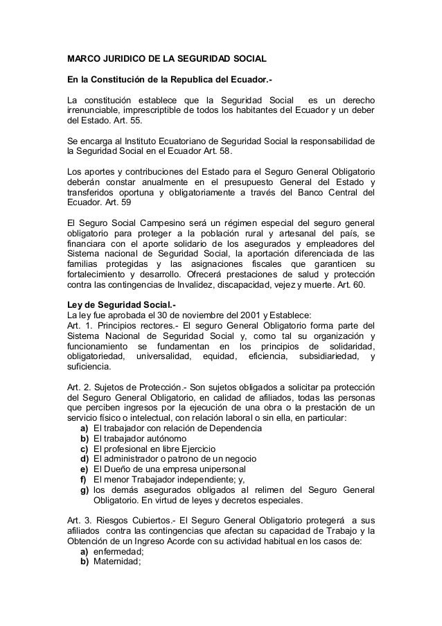 Derecho Ecuador Seguro Social Obligatorio