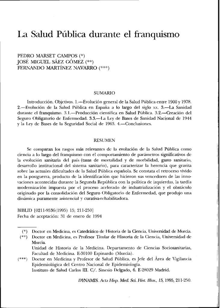 La Salud Publica Durante El Franquismo